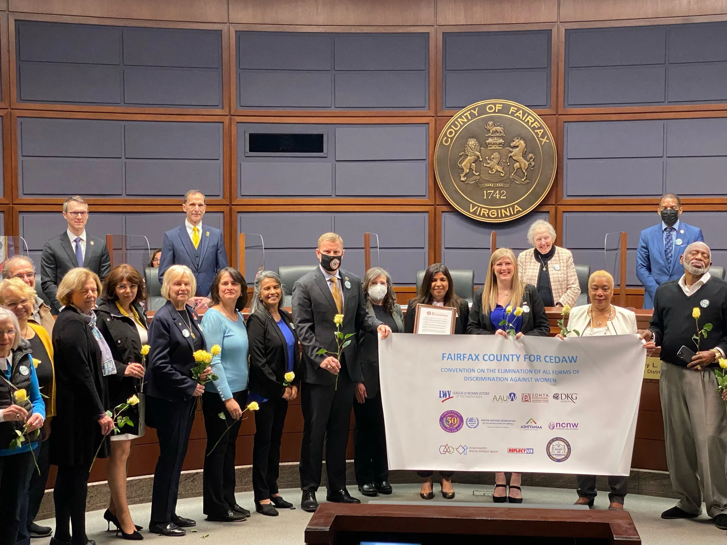 On March 8, 2022, the Fairfax County Board of Supervisors adopted a Resolution in support of CEDAW, the United Nations Convention on the Elimination of all Forms of Discrimination Against Women. The resolution resulted from the year-long campaign of the Fairfax Working Group for CEDAW..